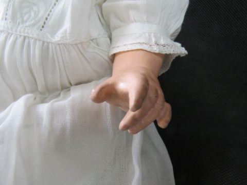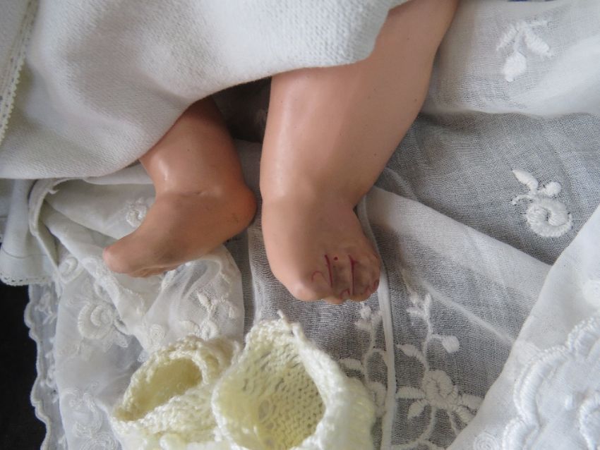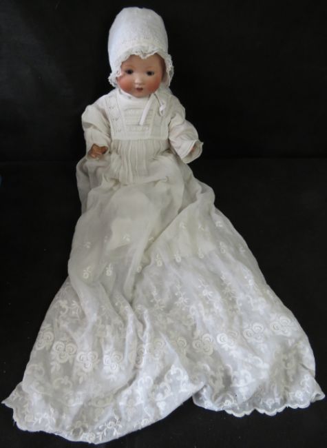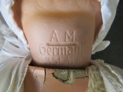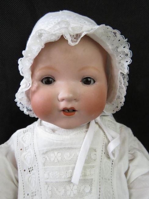 An Armand Marseilles bisque head baby doll, 351 / 1K, having sleepy eyes, open mouth with teeth and rosy cheeks.