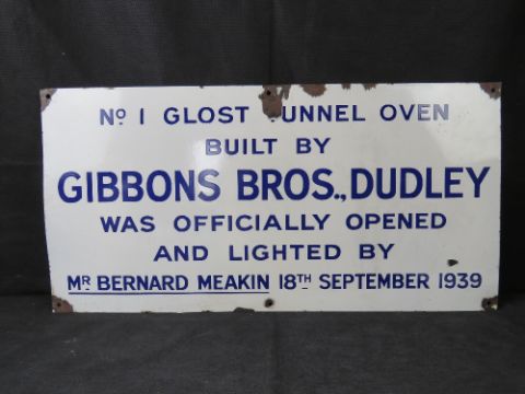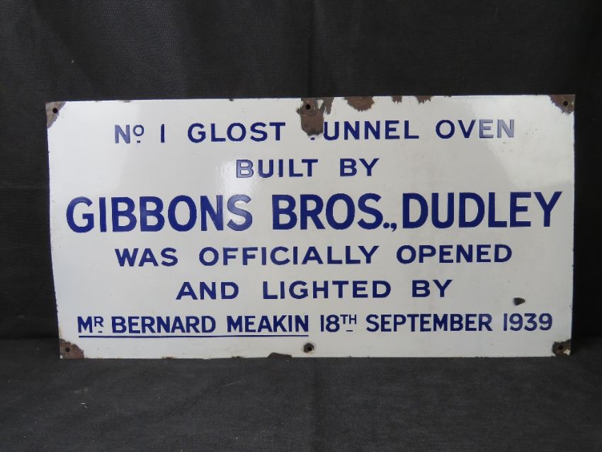 A large enamelled sign No1 Glost Tunnel Oven built by Gibbons Bros Dudley.