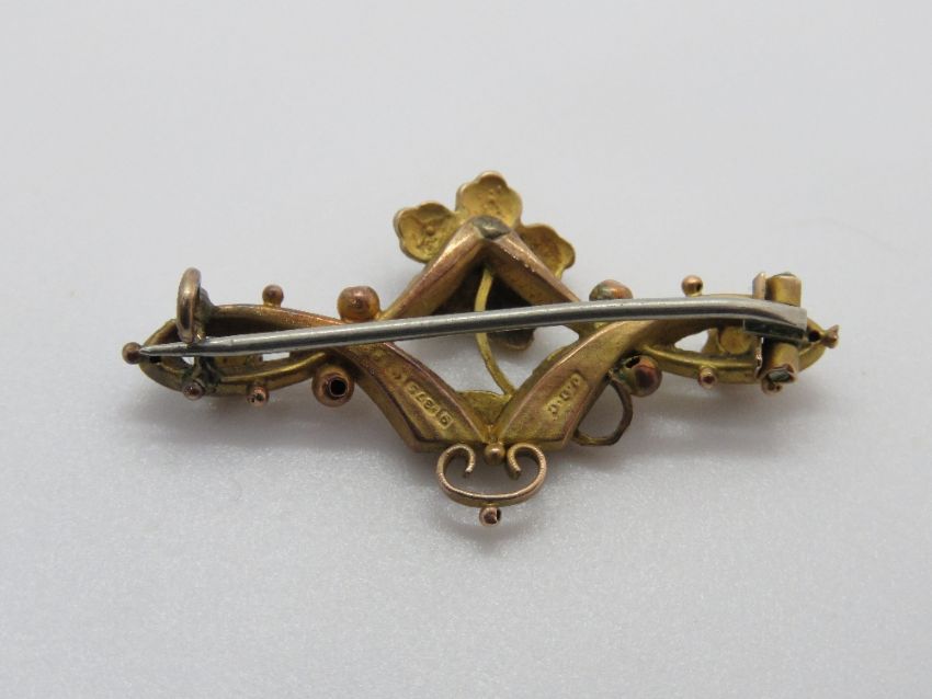 A 9ct gold and seed pearl brooch, hallmarked 375, 2.3g.