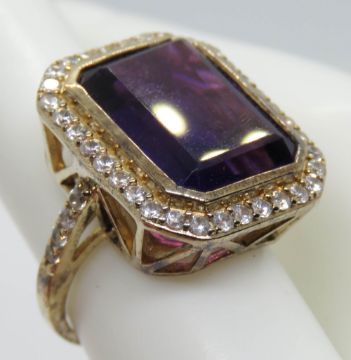 A 925 silver cocktail ring with purple stone, gold plated, size L-M.
