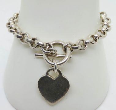 A heavy silver charm bracelet with heart tag, hallmarked 925, 31.5g.