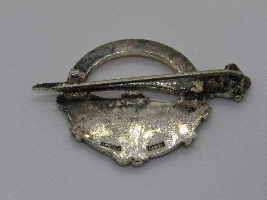 A silver Celtic cloak pin style brooch, hallmarked for Birmingham.