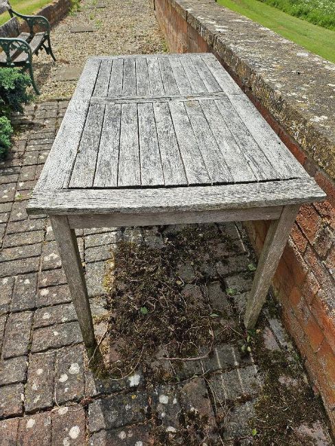 A wooden garden table, 160 x 80cm.