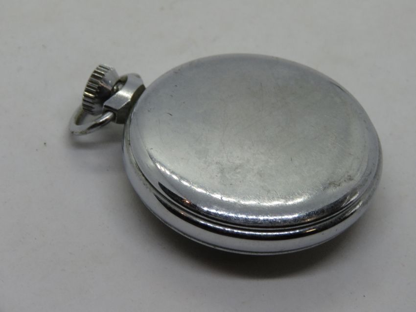 A Smiths pocket watch having cream dial with subsidiary seconds dial, chrome case.