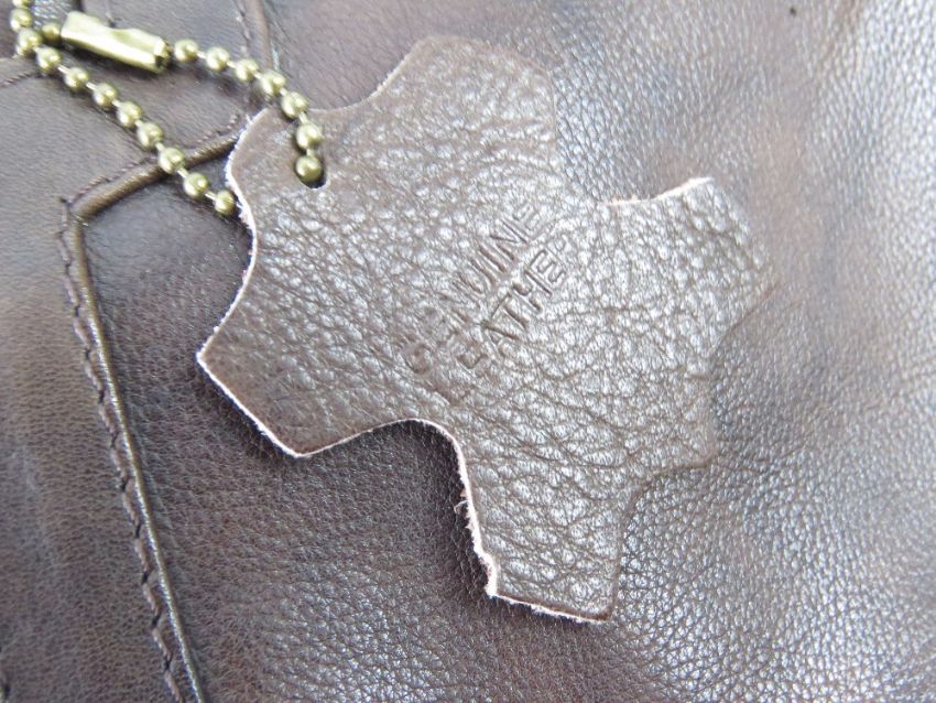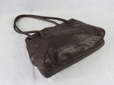 A brown leather handbag.
