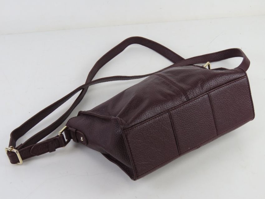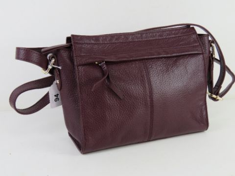 A plum coloured leather handbag by M&S, approx 24cm wide.