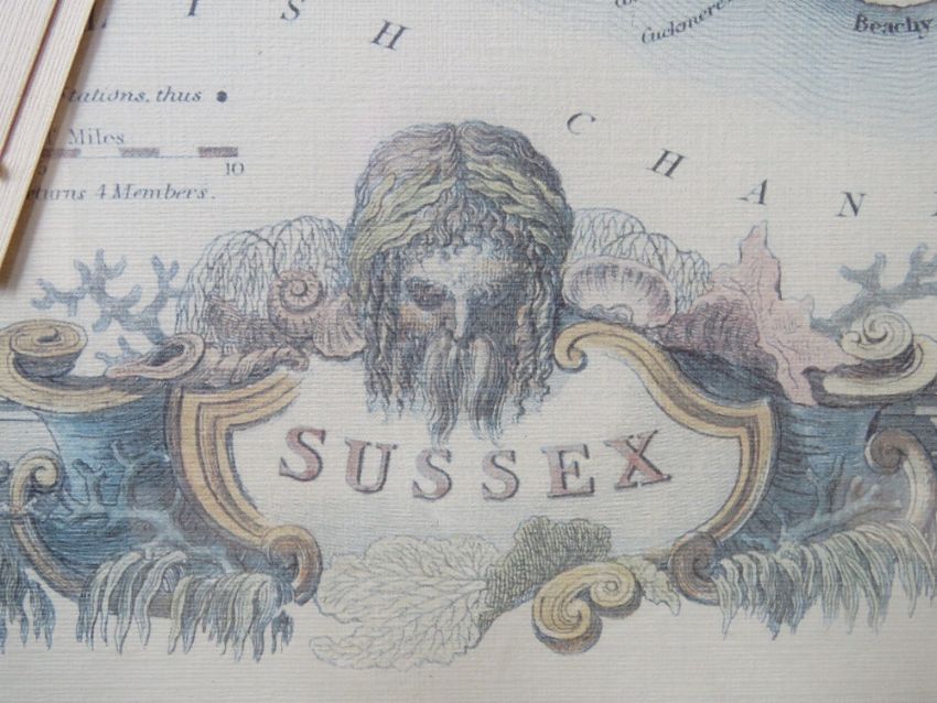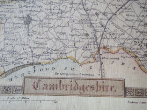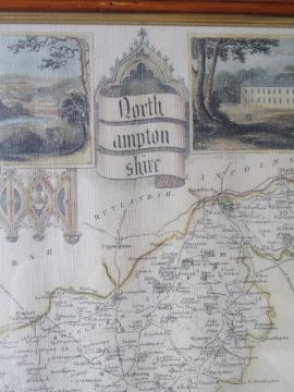 A quantity of late 20thC cartographic prints inc maps of Sussex, Northamptonshire, Cheshire, Cambridgeshire, Buckinghamshire, etc. Six framed, seven loose.