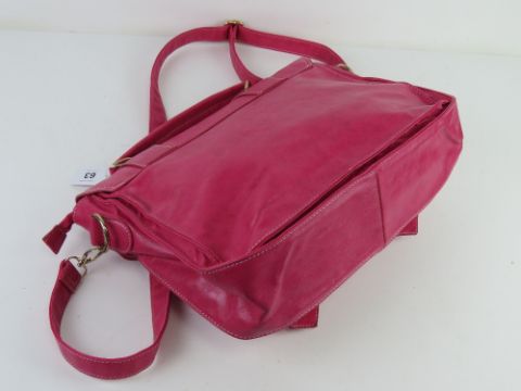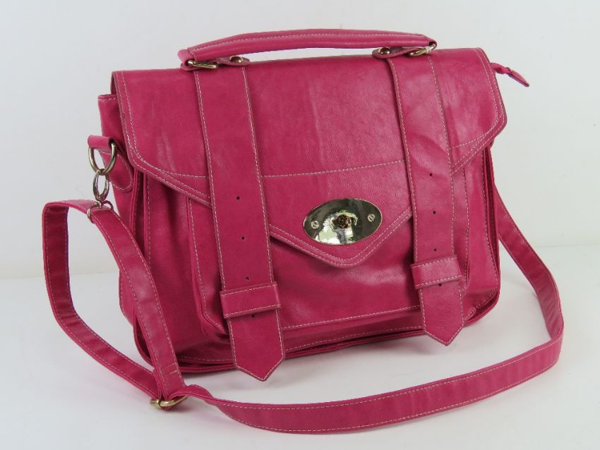 A hot pink satchel type handbag, approx 36cm wide.