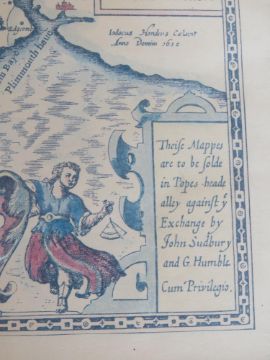 Print; John Speed's map of Cornwall, published 1997 by Heritage, framed and glazed and measuring approx 57 x 45cm overall.