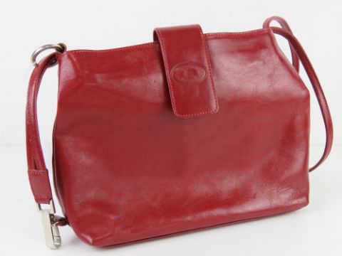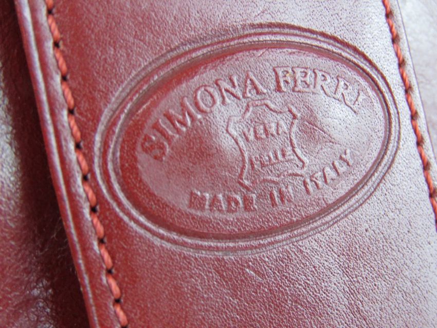 A red Italian leather handbag by Simona Ferri, approx 26cm wide.