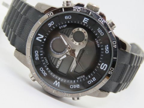 A Skyline wristwatch, stainless steel with rubber strap.