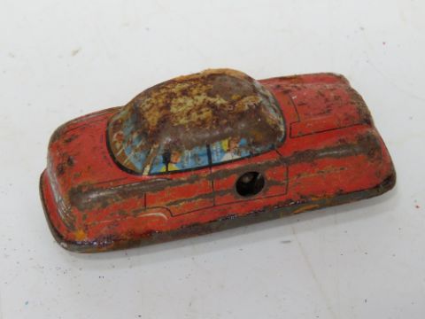 A tin-plate clockwork toy car.