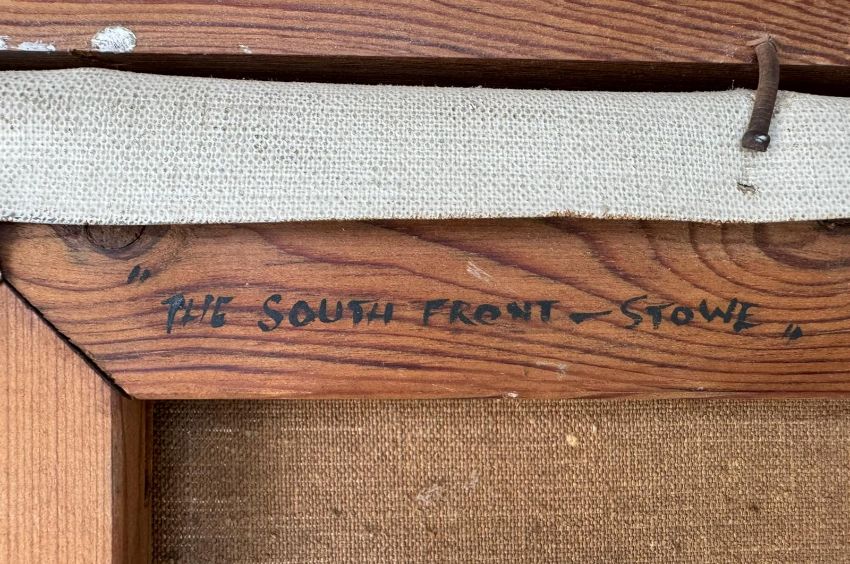 Handwritten by the artist to frame verso 'The South Front, Stowe'. Also dated 'July 1958'