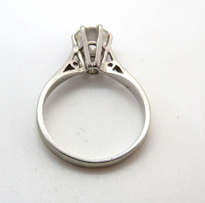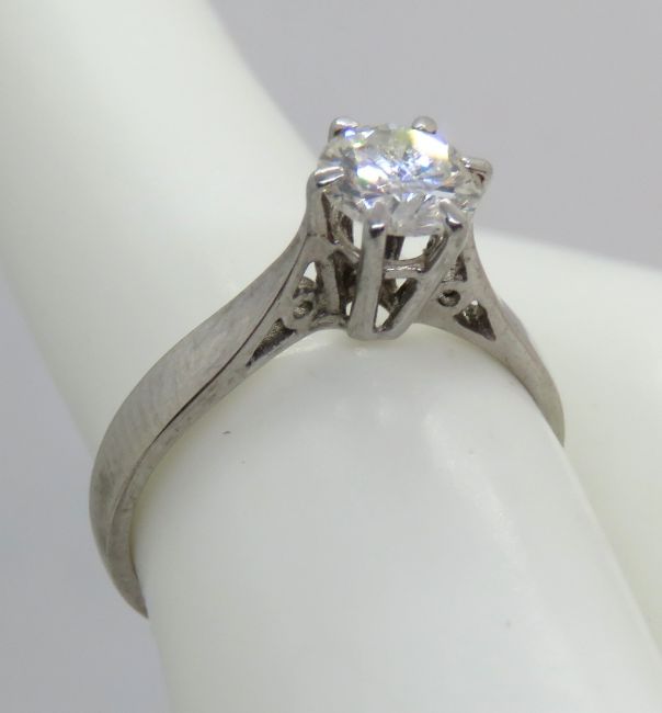 A superb and simply classic 18ct white gold diamond solitaire ring, the round cut brilliant diamond measuring approx. 6.2mm dia - estimated 0.9ct, the white gold hallmarked 750, size M, 2.7g.