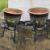 A pair of glazed platers each raised over iron base, 39cm dia, 66cm high.
