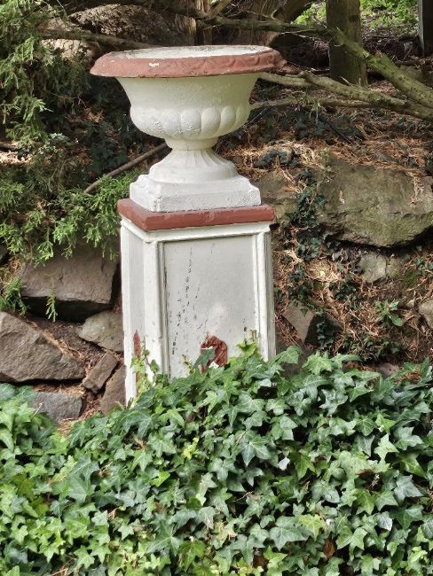 To match 91 - A pair of cast concrete classical garden urns raised over square shaped bases, 54cm dia, standing 118cm high.