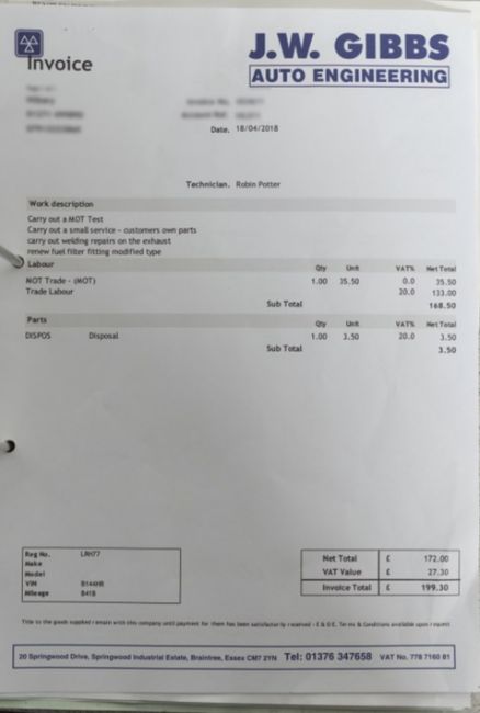 £4,900 spent with specialist in October 2017 on suspension repairs
