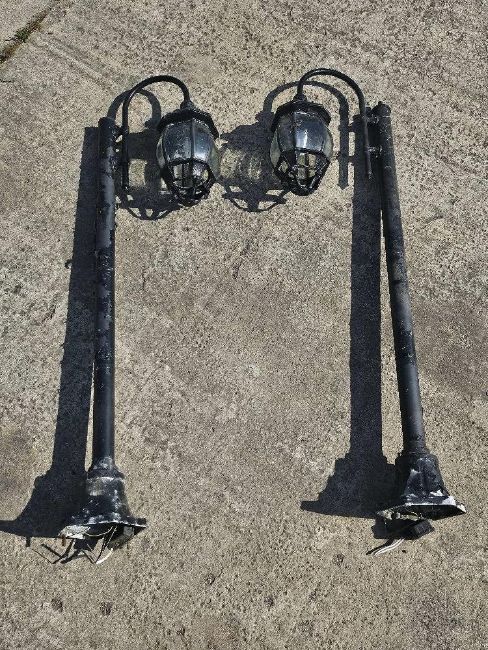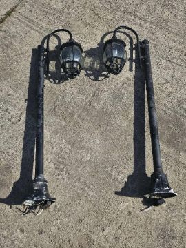 A pair of garden lights, 155cm tall. Disclaimer: electrical items are sold as untested and without guarantee.
