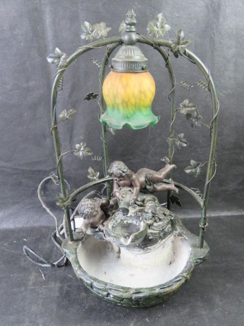 A contemporary bronzed table light and waterfall. Disclaimer: electrical items are sold as untested and without guarantee.
