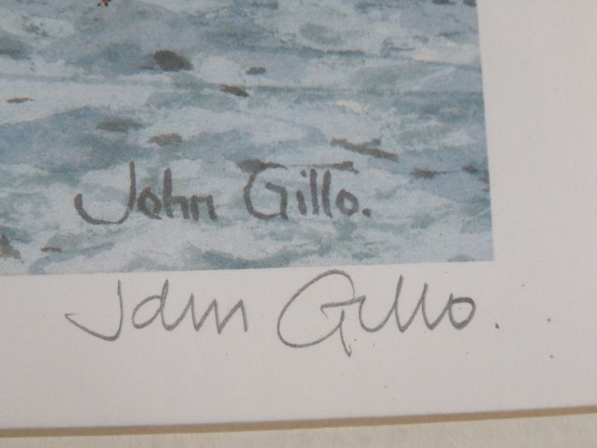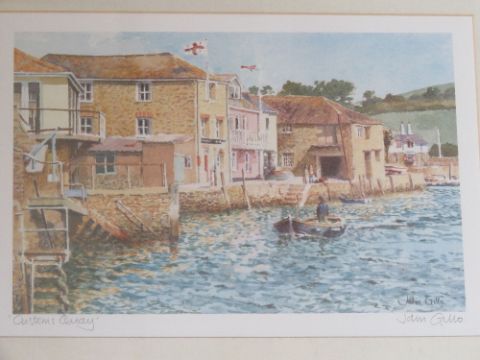 John Gillo signed watercolour print 'Customs Quay', framed, 42 x 33cm overall.