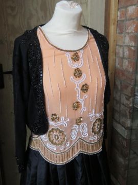 A 1980s skirt approx 26" waist. With modern beaded shear top and sequin cardigan.