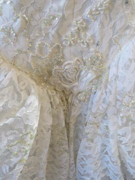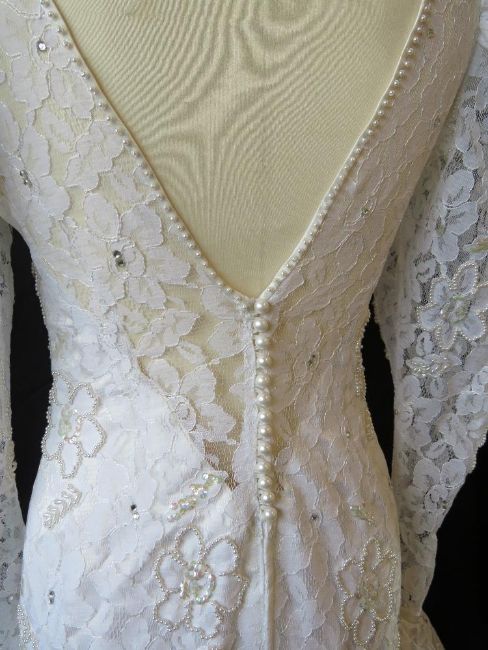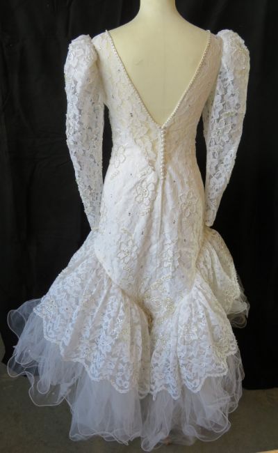 A retro wedding dress by Colombine Nemours c1980s - 1990s, approx 28" waist.