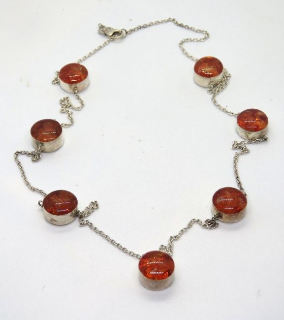 A 925 silver and red foiled glass cabachon necklace.
