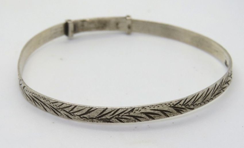 A silver bangle.