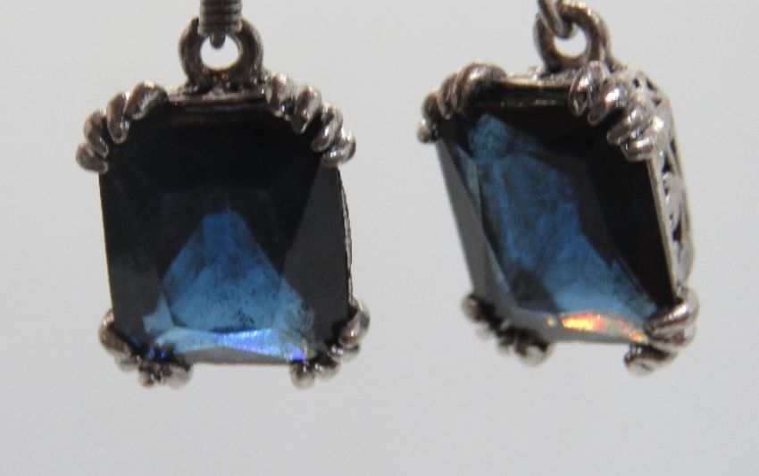 A pair of blue stone earrings, stamped 925.