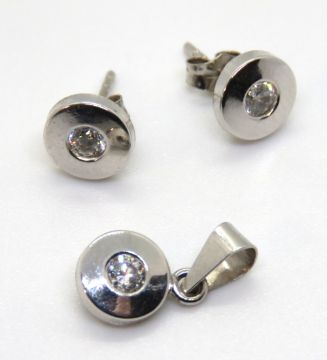 A matching white stone pendant and pair of earrings, butterfly backs stamped 375, 0.7g.