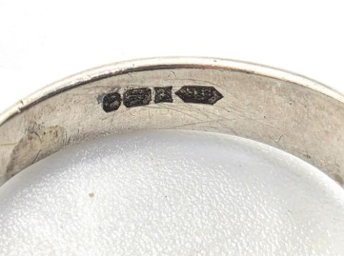 A Masonic blue enamel and silver ring having compass design, Birmingham hallmark, size O.
