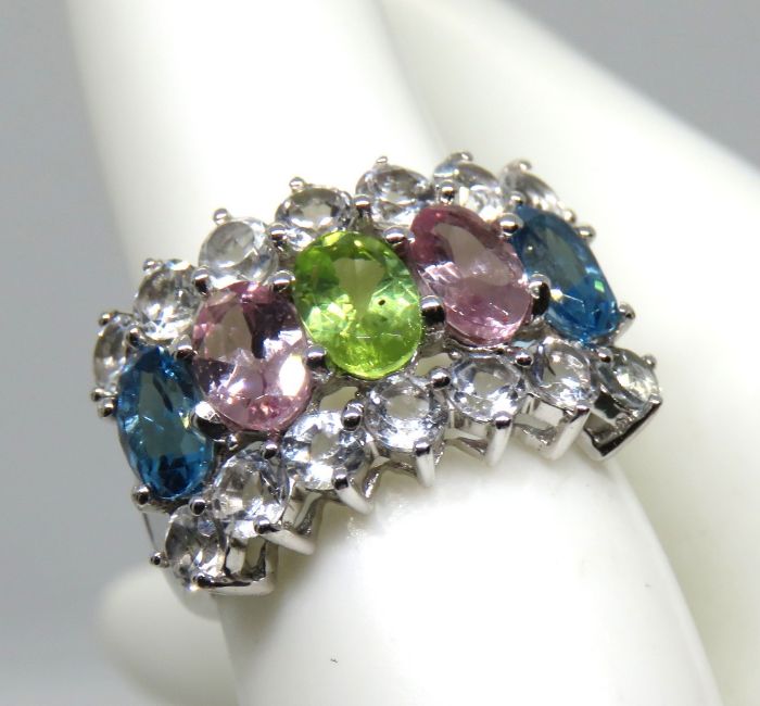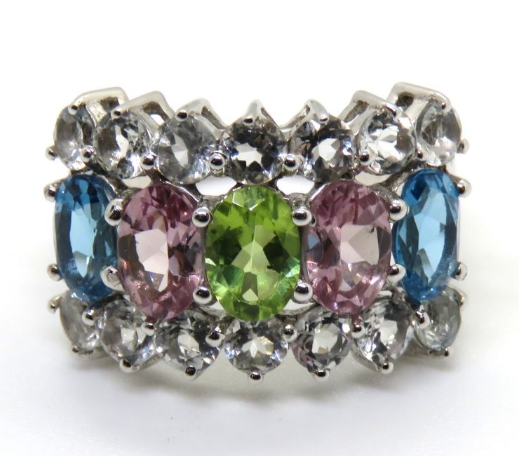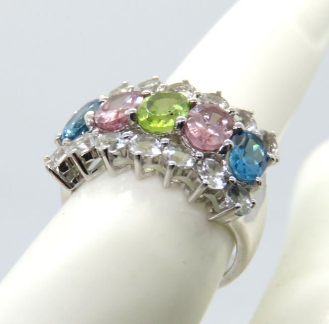 A silver multi colour stone ring, size J/K
