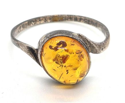 A silver and amber ring, size O-P.