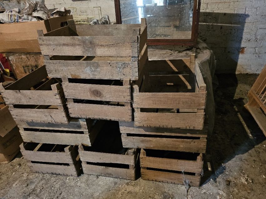Ten wooden apple crates. SIA - Collection from Byfield Northamptonshire