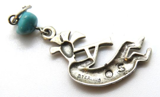 A Mexican style sterling silver pendant with turquoise drop.