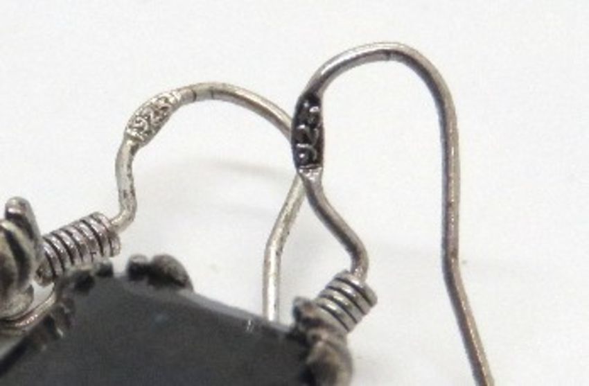 A pair of blue stone earrings, stamped 925.