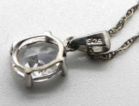 A silver white stone pendant on chain, stamped 925.