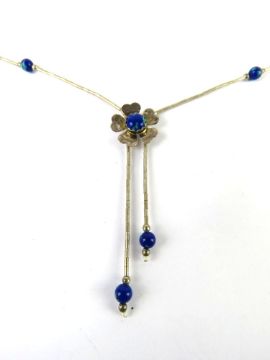 A Native American style silver beaded necklace having blue stone set floral design, marked Sterling.